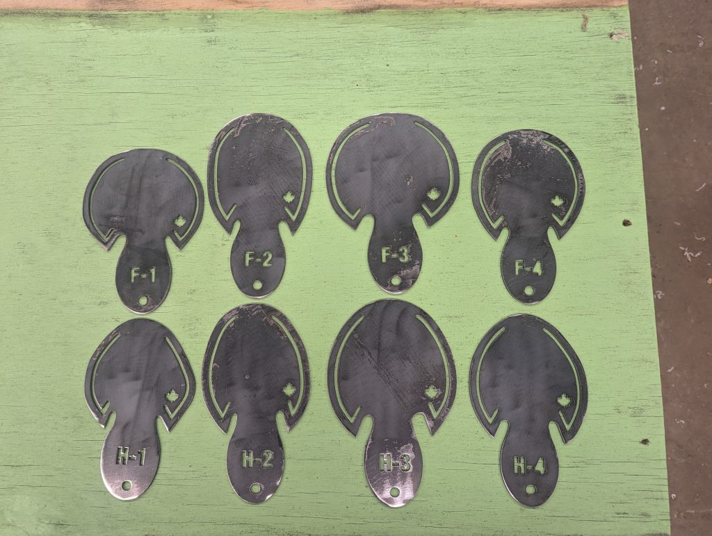 Set of 8 hoof patterns. $225 plus applicable taxes. Shipping within Canada $25.